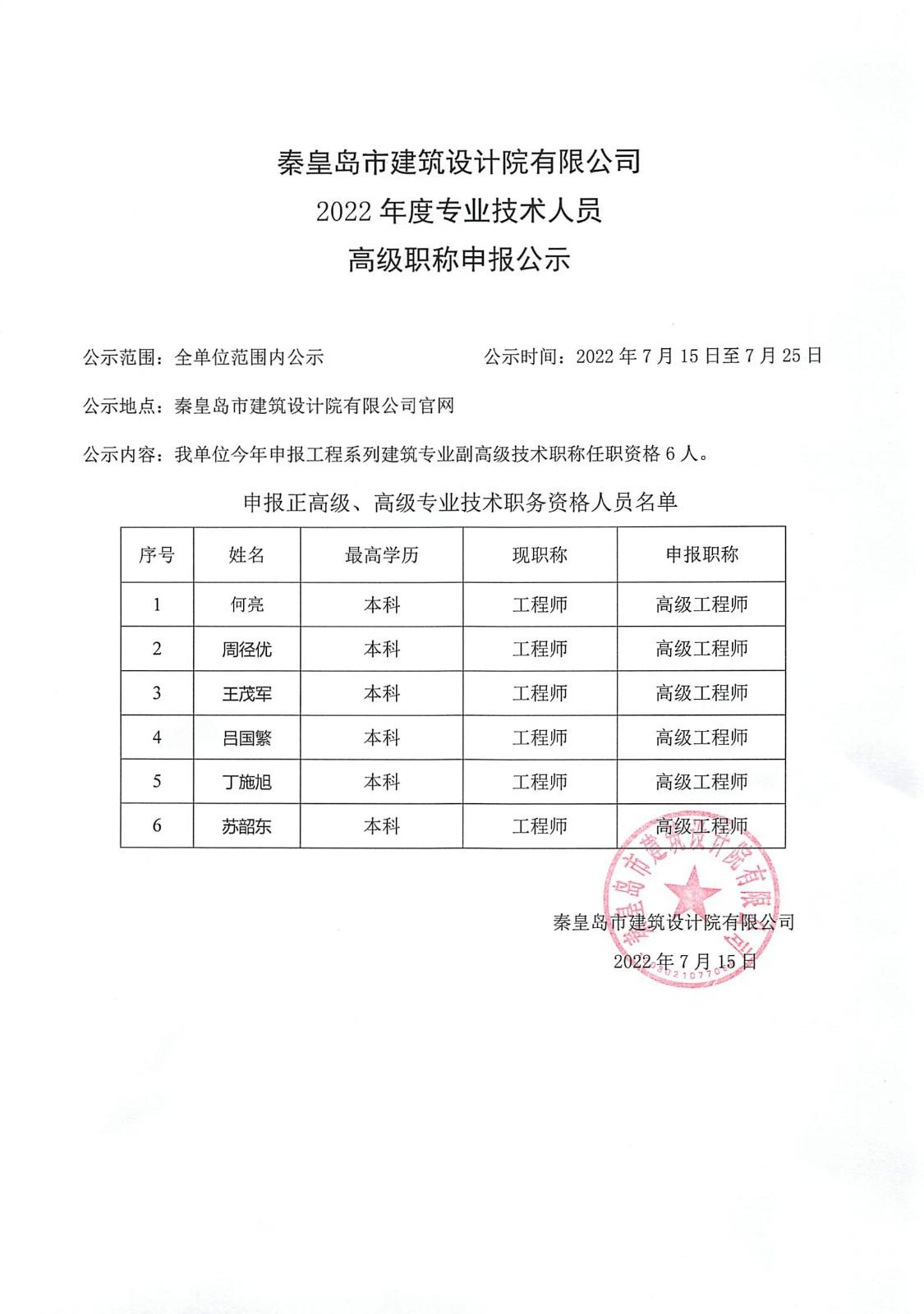 2022高級(jí)職稱公示